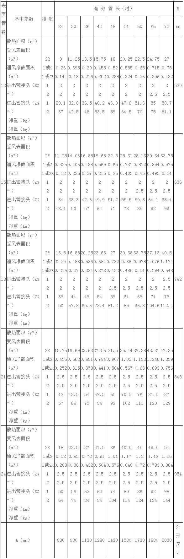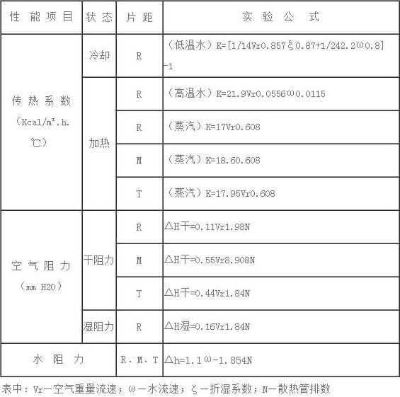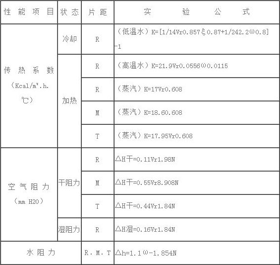 表中基本參數(shù)數(shù)據(jù)域不同排數(shù),不同片距型空氣熱交換器換算式
